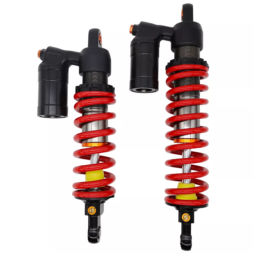 Oljegassseparasjon Eksternt kollisjonspute UTV bakre støtdemper er spesialdesignet for UTV-er, terrengkjøretøyer og hardcore terrengkjøretøyer, og fungerer som et oppgraderingsalternativ for originale fabrikkstøtbokker. De har uavhengige kollisjonskamre og høyt trykk nitrogenolje-gass separasjonsstrukturer, noe som forbedrer varmeavledningen og påvirkningsmotstanden betydelig, egnet for komplekse terreng som ørkener, steiner og gjørme.